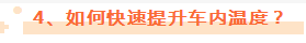 要想車內(nèi)快速升溫,應(yīng)先啟動發(fā)動機預(yù)熱,待發(fā)動機溫度指針到達中間位置后,再打開暖風,同時把空氣循環(huán)設(shè)置為外循環(huán),讓車內(nèi)的冷空氣盡快排出車外。兩三分鐘后,再將空氣循壞設(shè)置為內(nèi)循環(huán)即可。尤其注意在車內(nèi)有小朋友的時候,使用暖風時要保證車內(nèi)空氣流通。