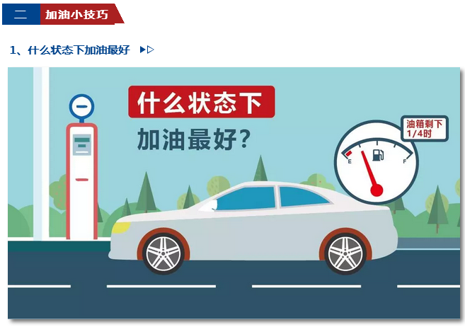 加油不宜太滿,跑市區(qū)請加油箱的一半或2/3。因?yàn)槭袇^(qū)行車經(jīng)常走走停停,若加滿油箱則會加重引擎的負(fù)荷,造成起步?jīng)]力,同時又增加了油耗。