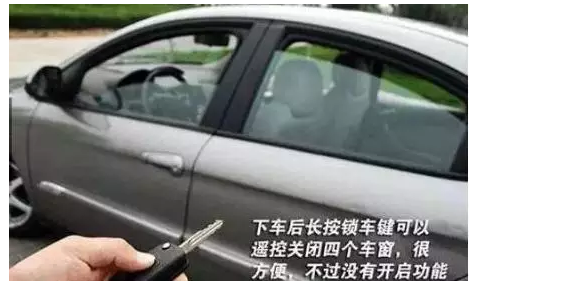 車(chē)輛熄火后才發(fā)現(xiàn)四個(gè)車(chē)窗和天窗都沒(méi)關(guān)閉,此時(shí)粗心的車(chē)主只好重新打火后關(guān)閉車(chē)窗。其實(shí)大可不必周折,只要長(zhǎng)按鎖車(chē)鍵幾秒鐘,四門(mén)車(chē)窗就會(huì)自動(dòng)升起,天窗也會(huì)自動(dòng)關(guān)閉;長(zhǎng)按解鎖鍵幾秒鐘,車(chē)窗會(huì)自動(dòng)降下,天窗也隨之打開(kāi);長(zhǎng)按后備箱鎖(有的車(chē)是連按兩次)也可以打開(kāi)后備箱蓋。
